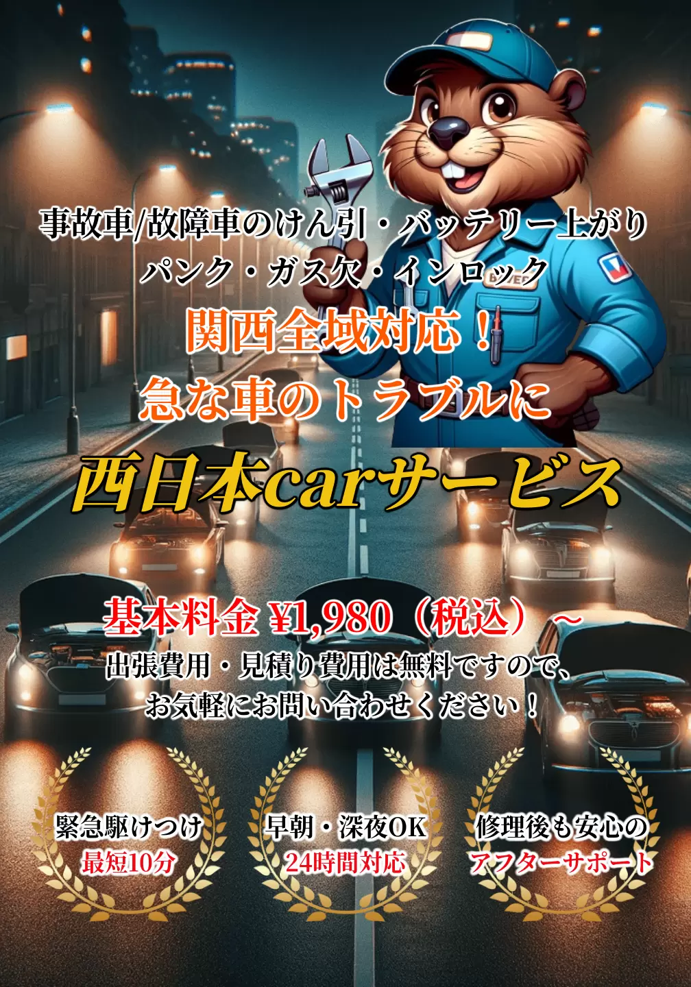 西日本carサービスは業界最安水準の費用で作業しますので、お気軽にお問い合わせください。3,480円からの対応で、見積り・出張費はもちろん無料です。